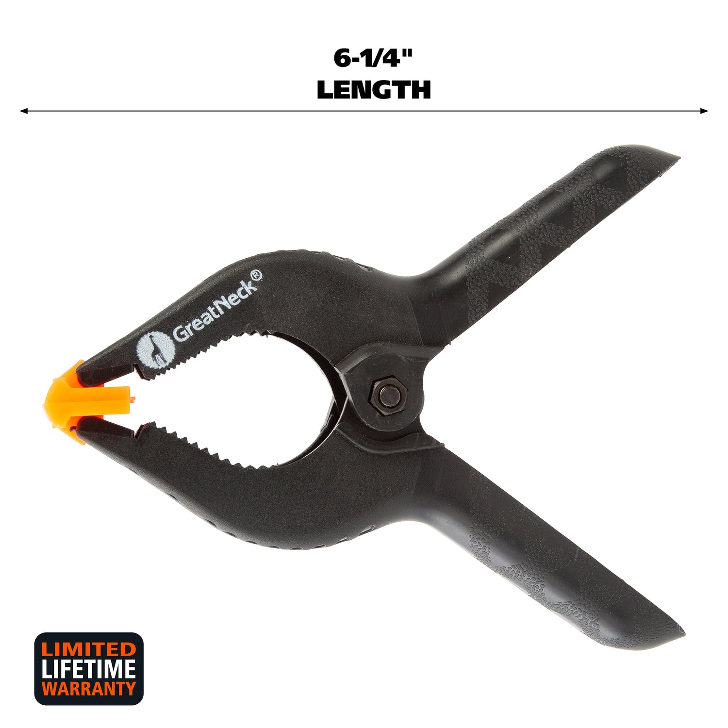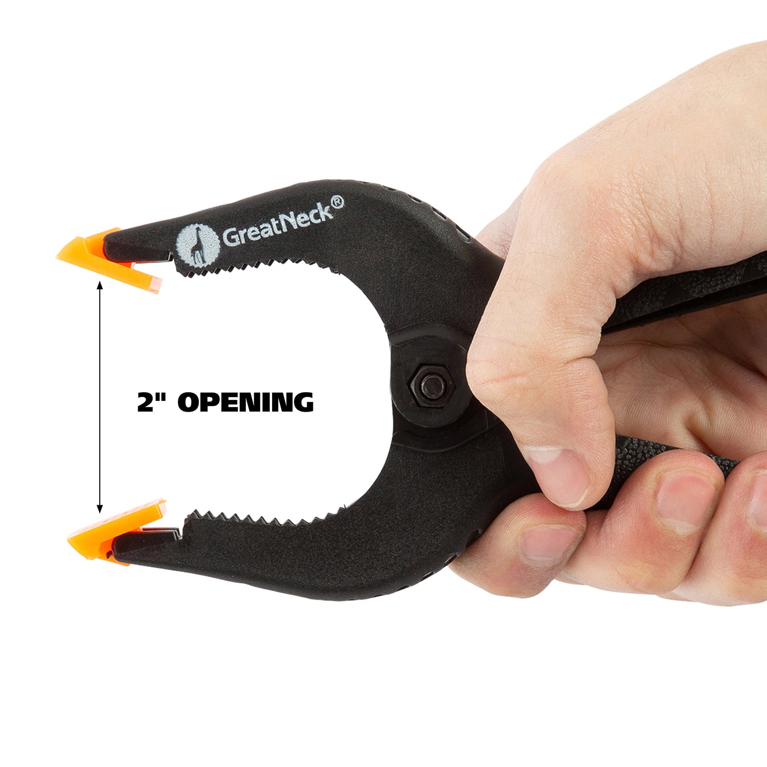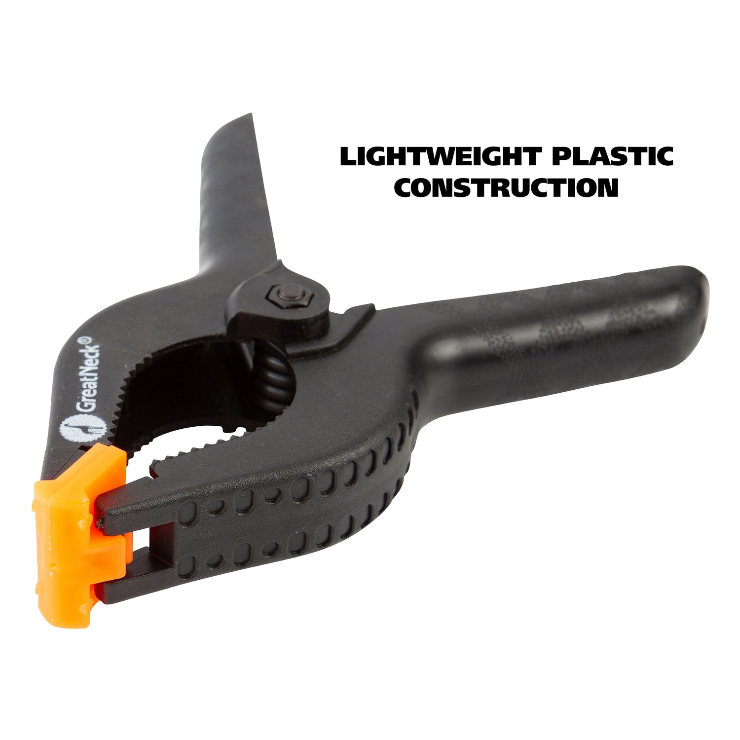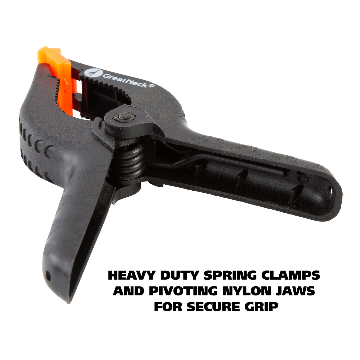 The GreatNeck Nylon Spring Clamp (2 Inch) is perfect for hobbies and crafts, woodworking and hundreds of other uses. Made of lightweight plastic for durability, it features heavy duty spring clamps that deliver strong pressure and pivoting nylon jaws for a secure grip.