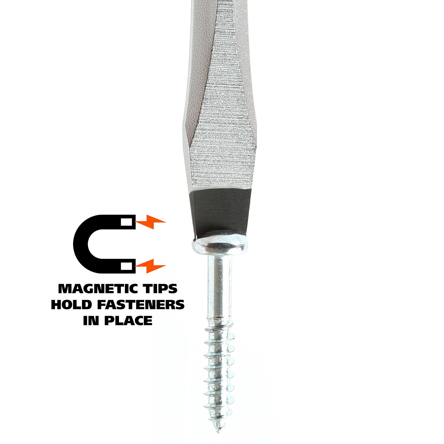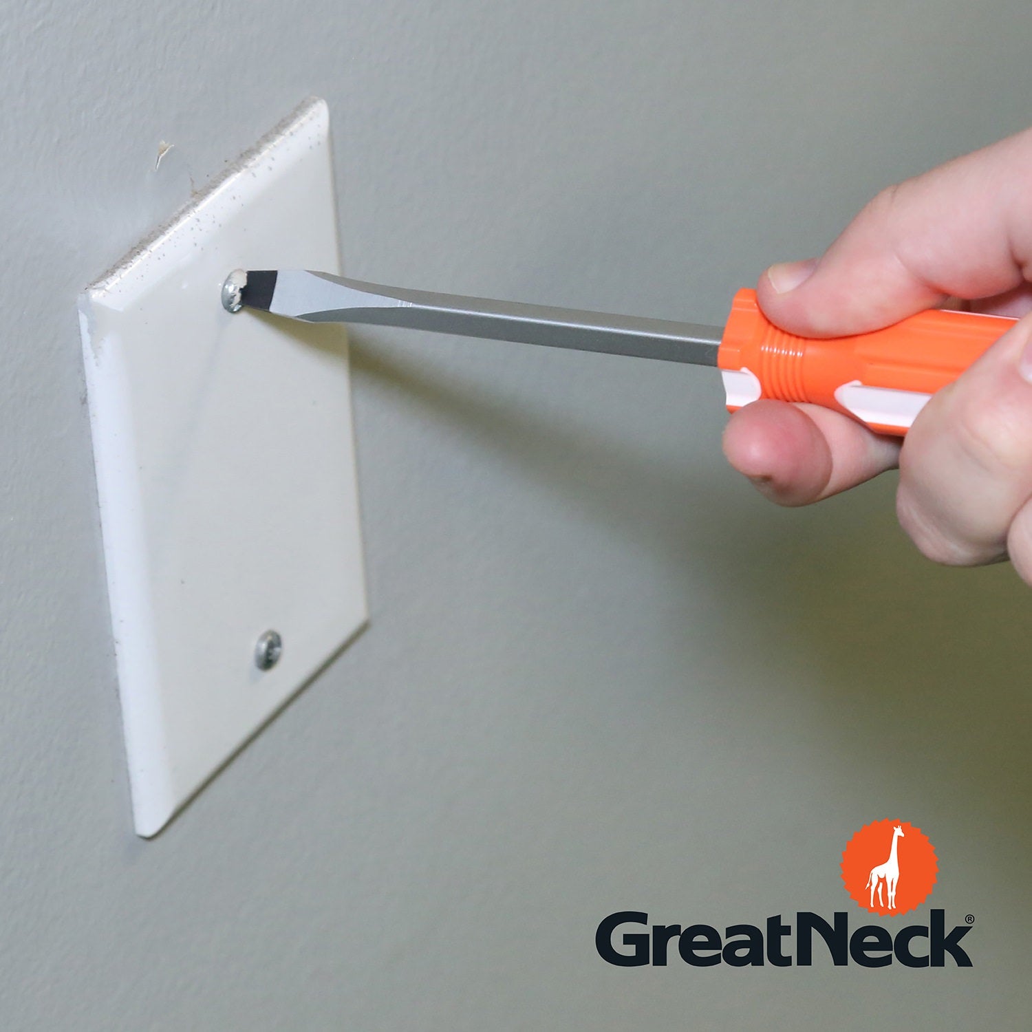 The GreatNeck 3/16" x 4" Slotted Square Shank Screwdriver is designed for any fastening task—constructed with a Chrome Vanadium Steel Shank for strength and an impact resistant acetate handle. Equipped with a precision machined, sand-blasted tip, this driver provides an exact fit for reduced cam out and longer tip durability. The magnetized tip provides a more secure hold, allowing one-handed use in tight spaces. The square shank can be gripped by an adjustable wrench to apply more torque to remove stubborn fasteners. The fluted handle design creates multiple gripping points for a sure grip at any angle.