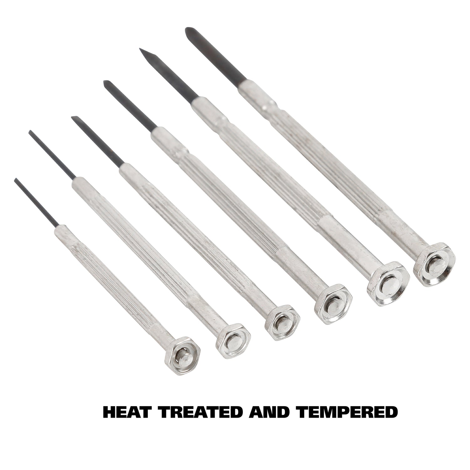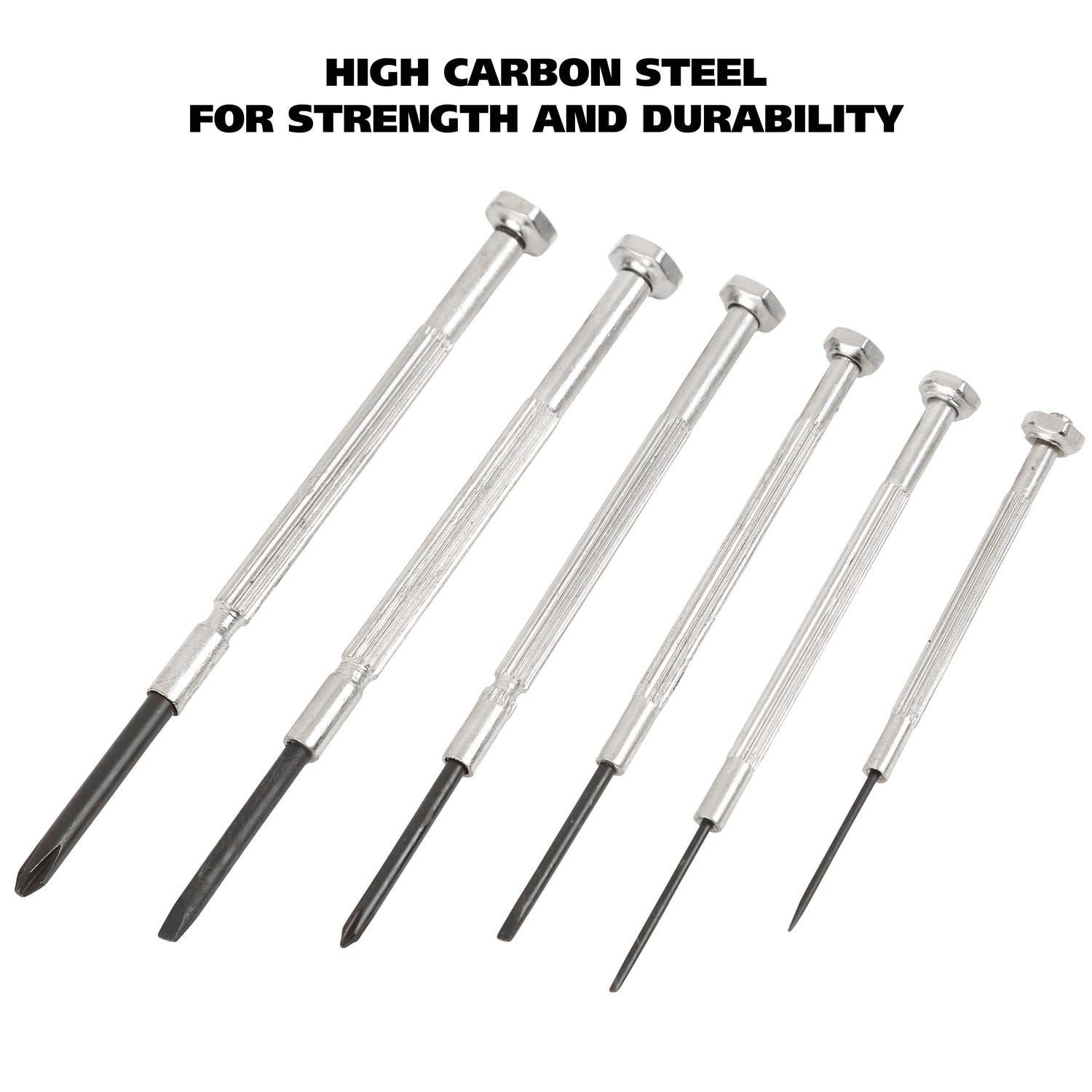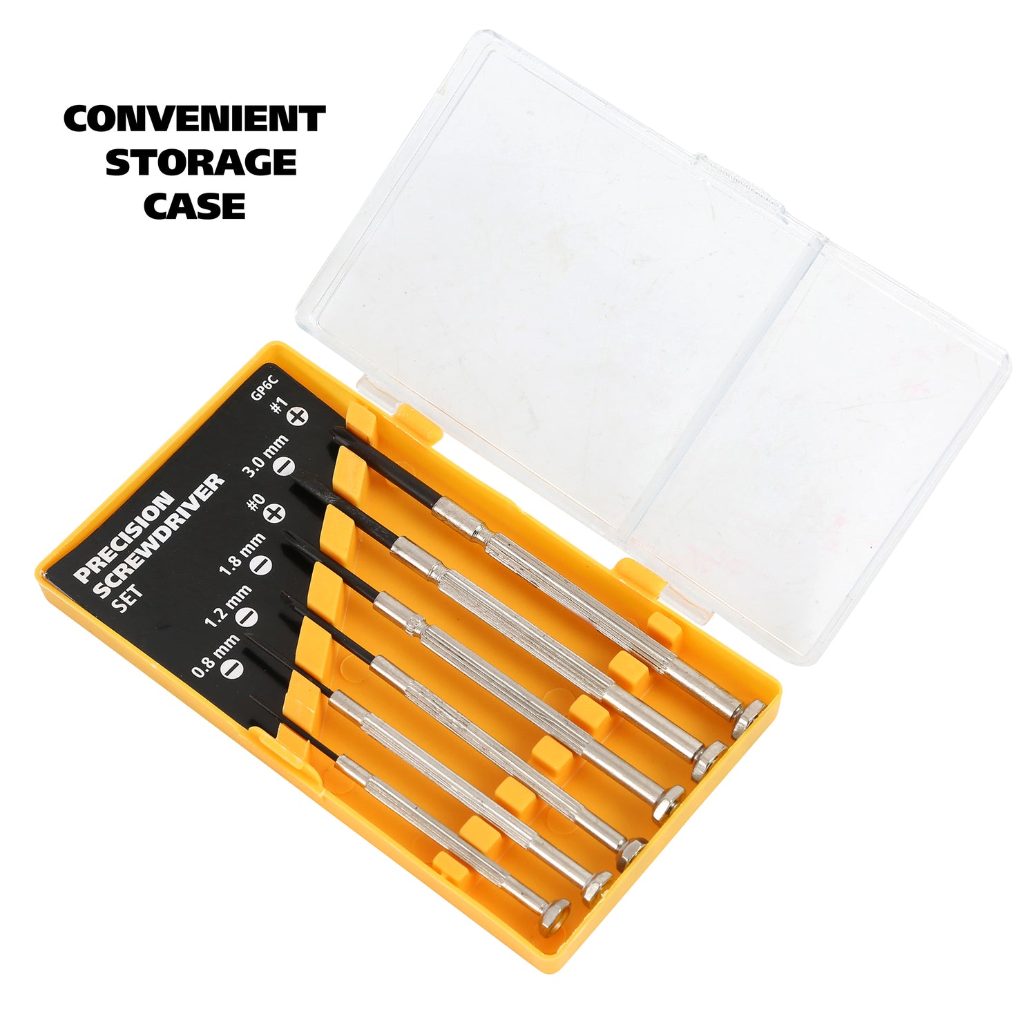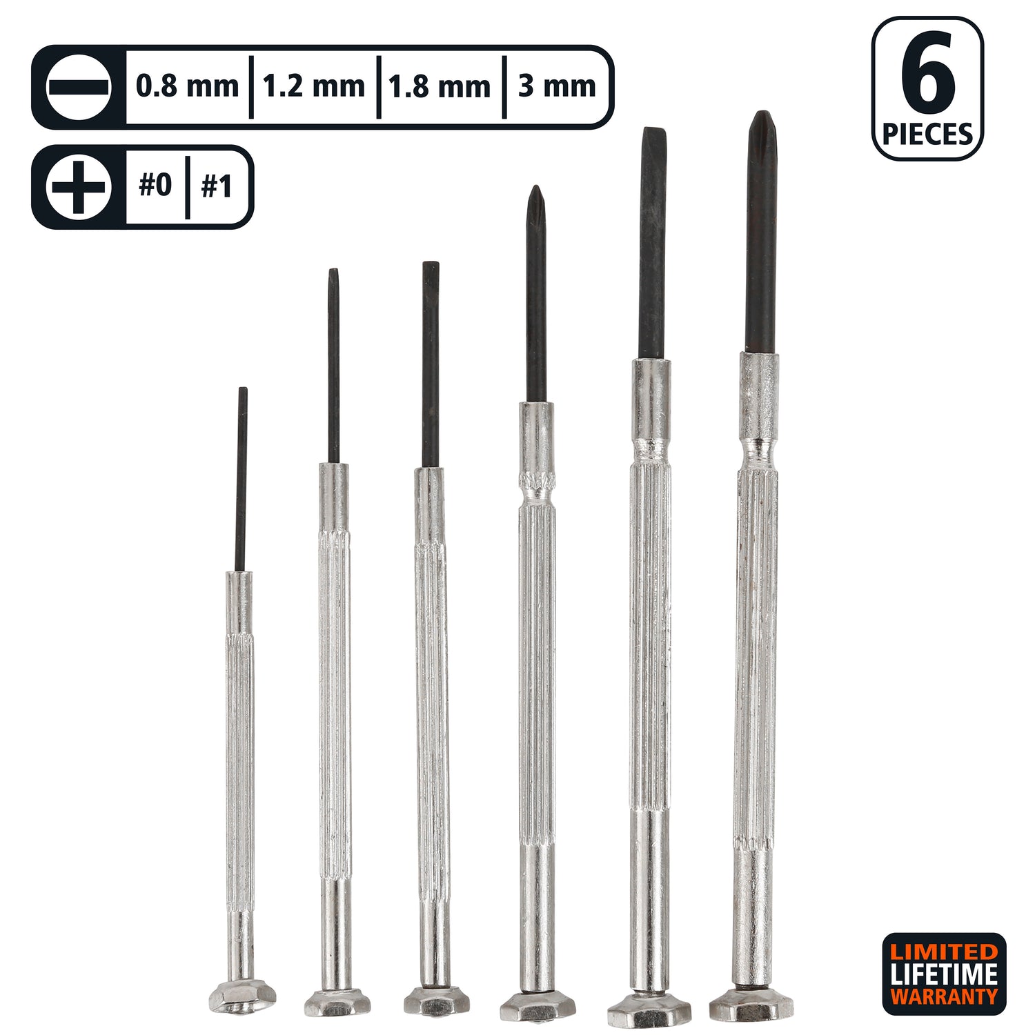 The GreatNeck 6 Piece Precision Screwdriver Set is ideal for detailed work. It features heat treated and tempered high carbon steel blades that are meant to withstand repeated use. Comes in a convenient storage case for easy carrying.