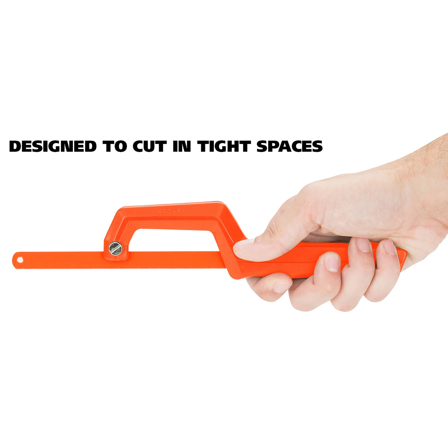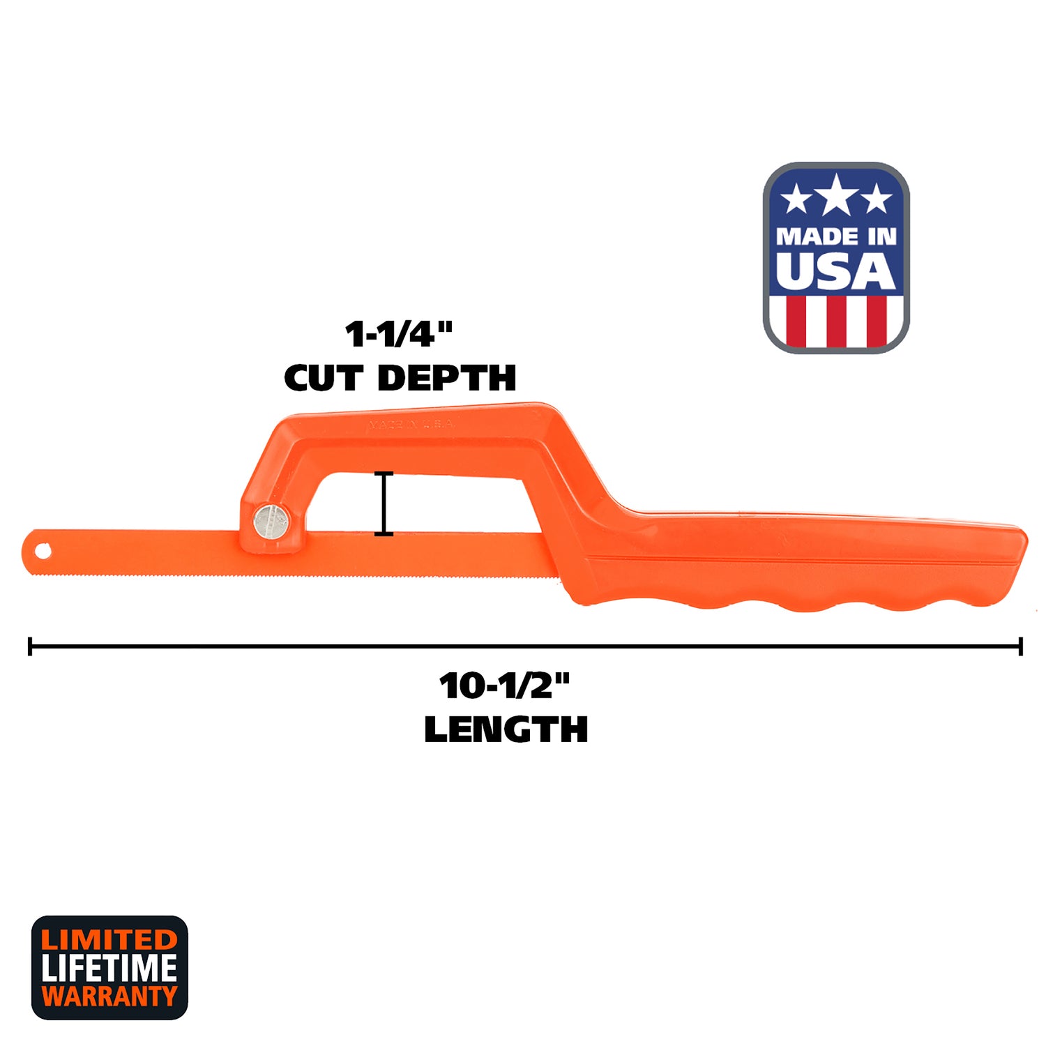 - Adjustable Frame Accepts 10 Inch and 12 Inch Hacksaw Blades