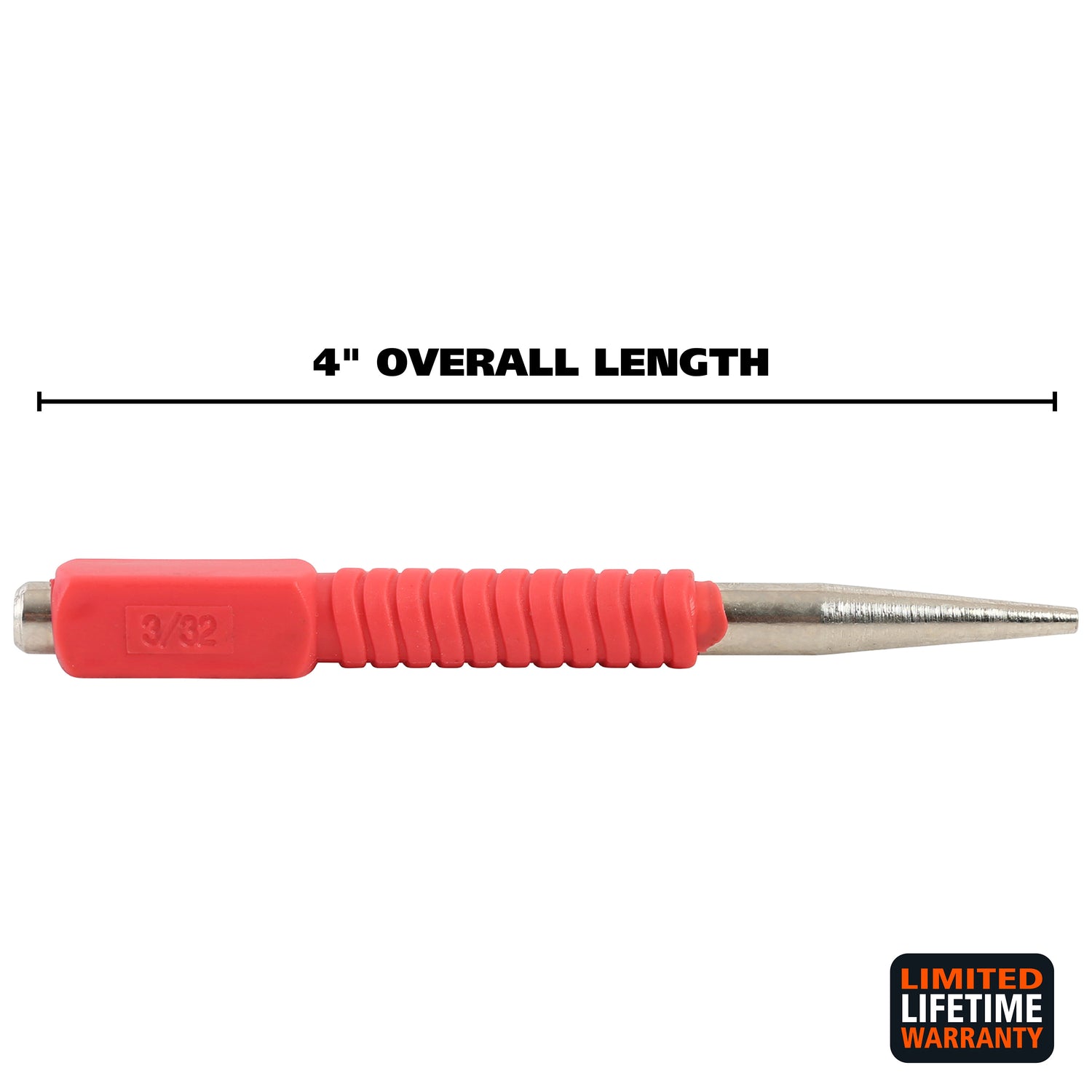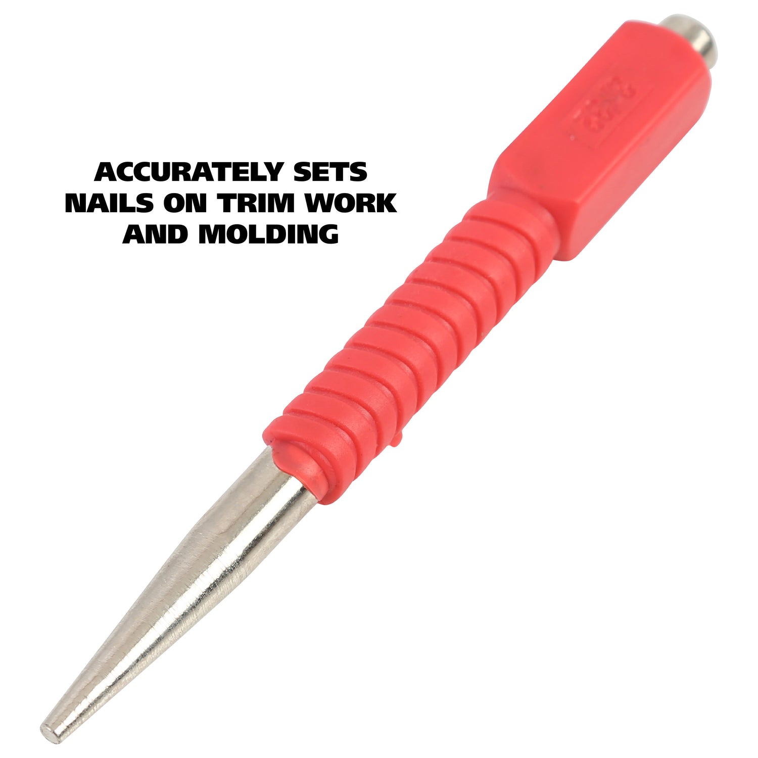 The GreatNeck Nail Set (3/32 Inch) accurately sets nails on trim work and molding and features a square head to prevent rolling. Constructed with alloy steel for strength and durability, it is heat treated and tempered for longer life.