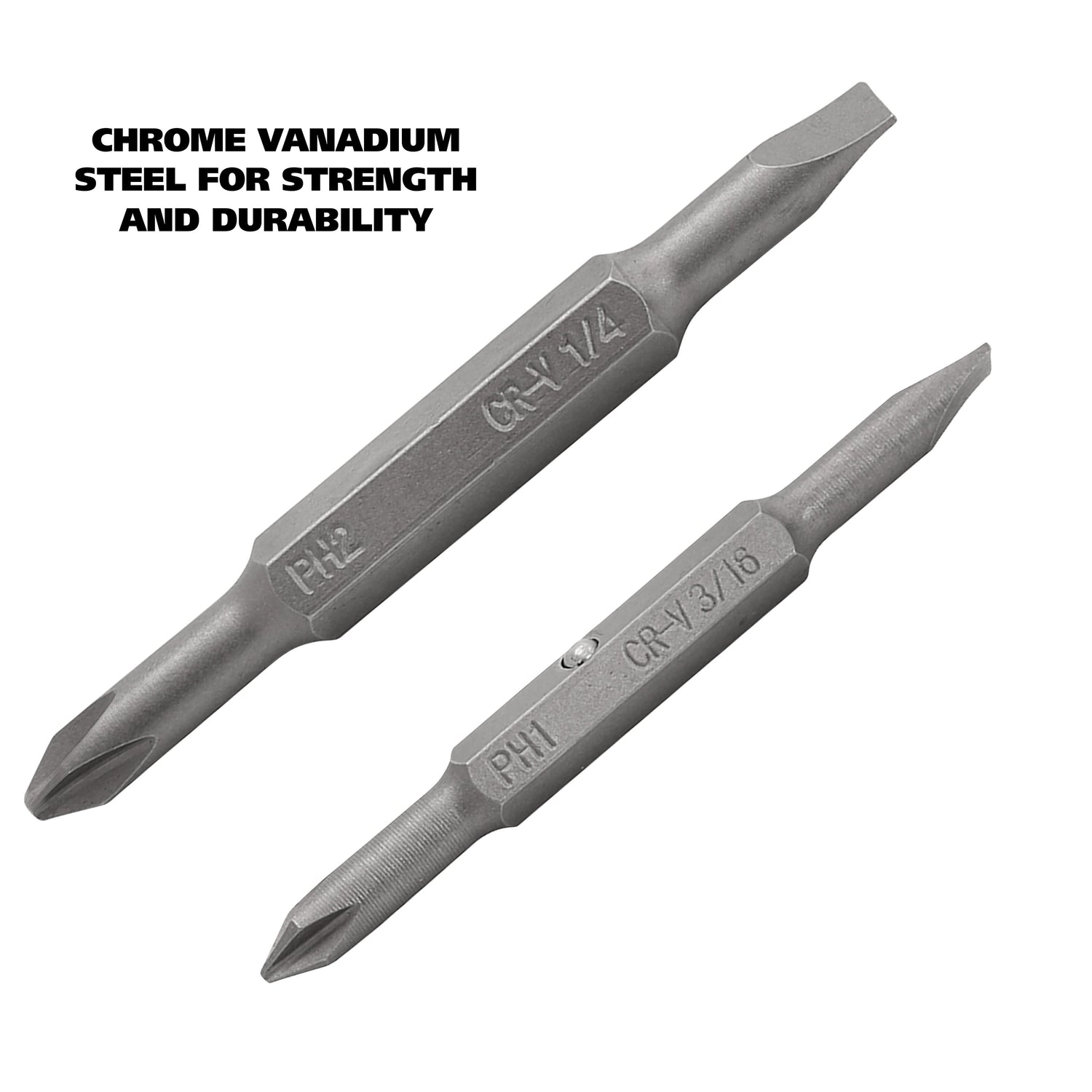 The GreatNeck 6-in-1 Screwdriver is an excellent space saver. It comes with 4 bits stored in the handle for easy accessibility. The heavy duty shock resistant mechanic's style handle is easy to grip and provides added comfort and control.