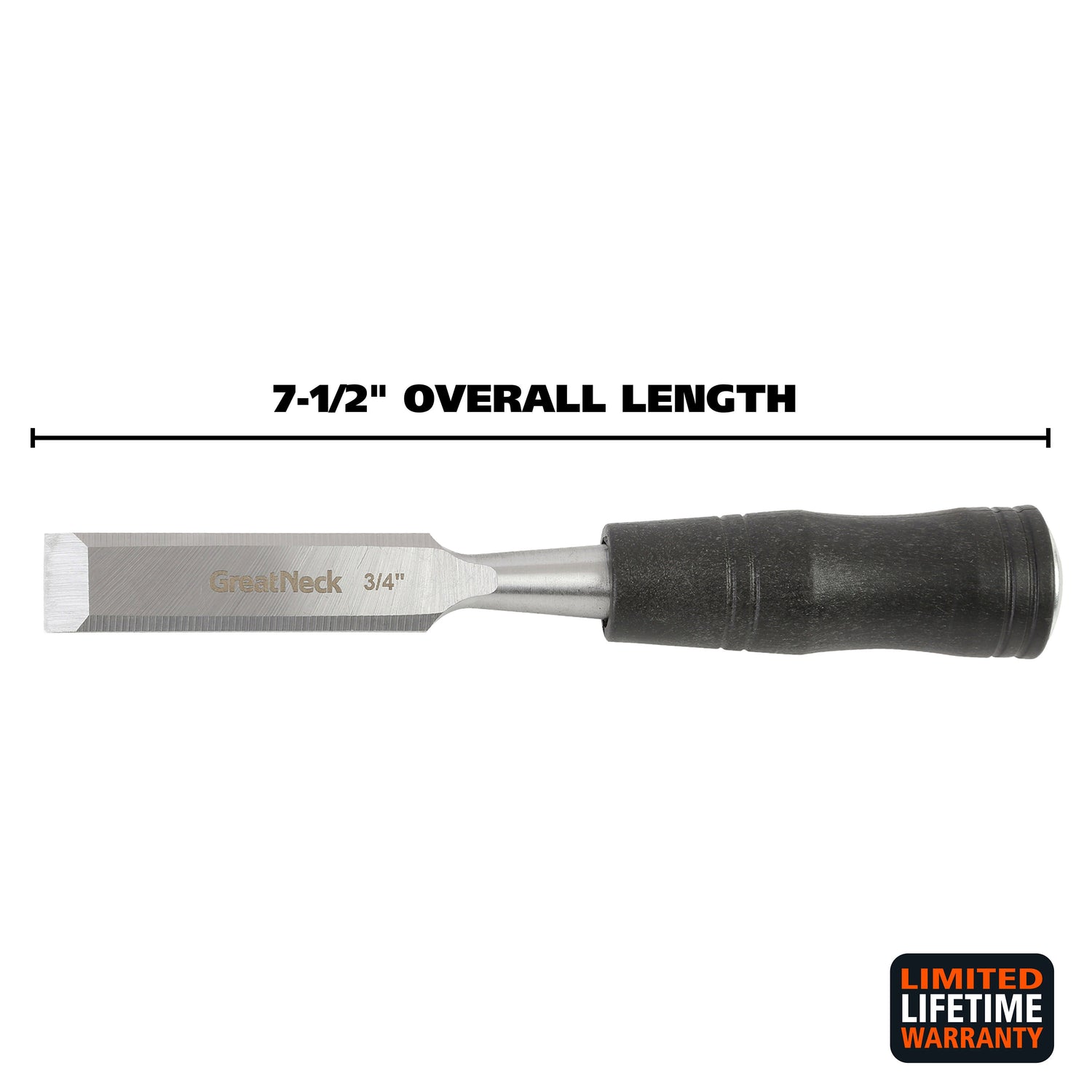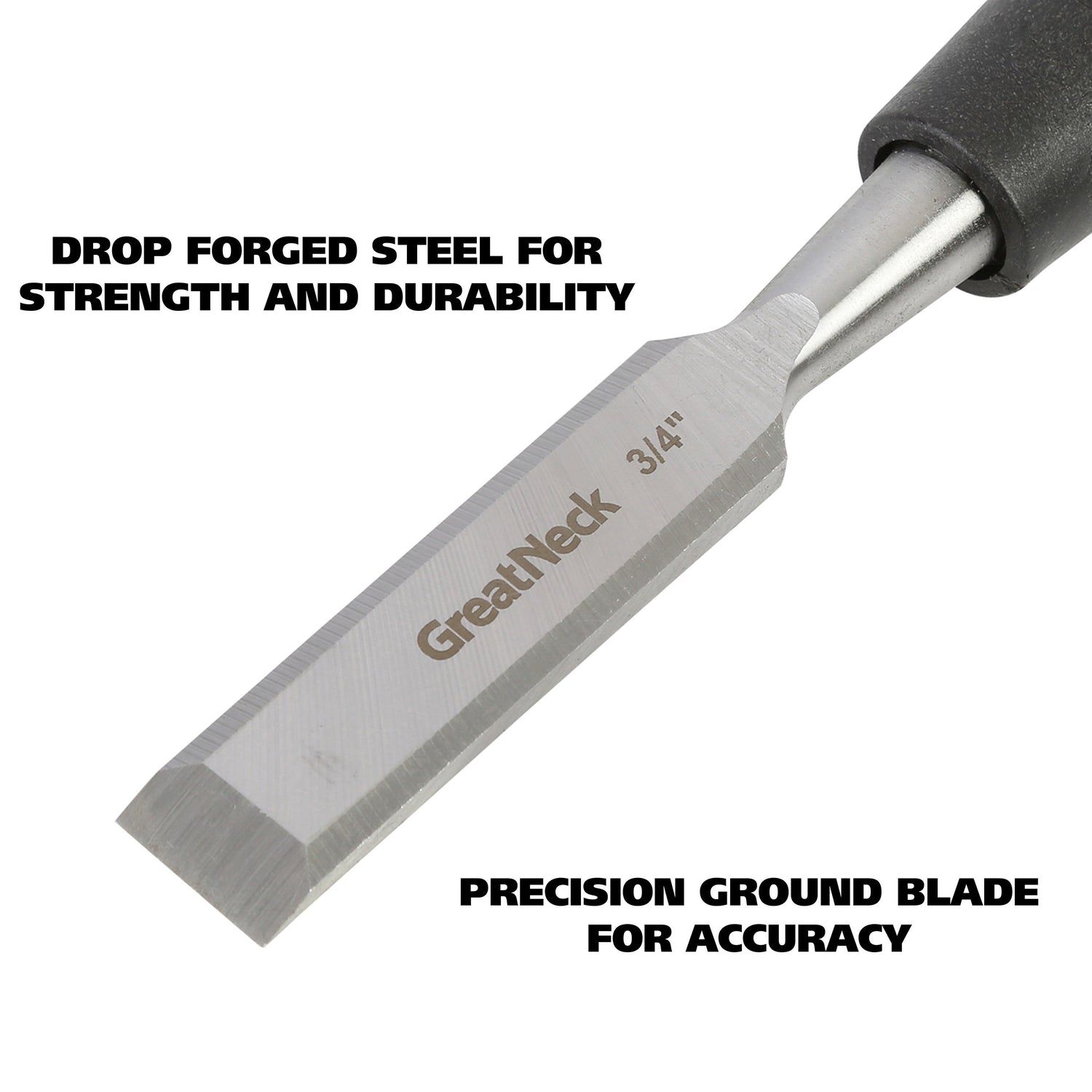 The GreatNeck Wood Chisel (3/4 Inch) is the ideal tool for any woodworking project and is designed to make finish or paring cuts on wood surfaces. The 3 inch blade is constructed of drop forged steel for strength and durability and is precision ground for accuracy. The handle is constructed of premium grade acetate with a steel cap for use with chisel mallets.